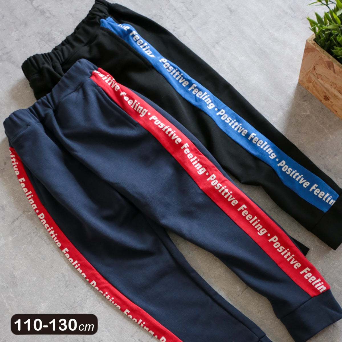 動きやすいミニ裏毛素材のロングパンツ。 サイドに入ったカラーのロゴ入りラインがスポーティーな印象を与えます。