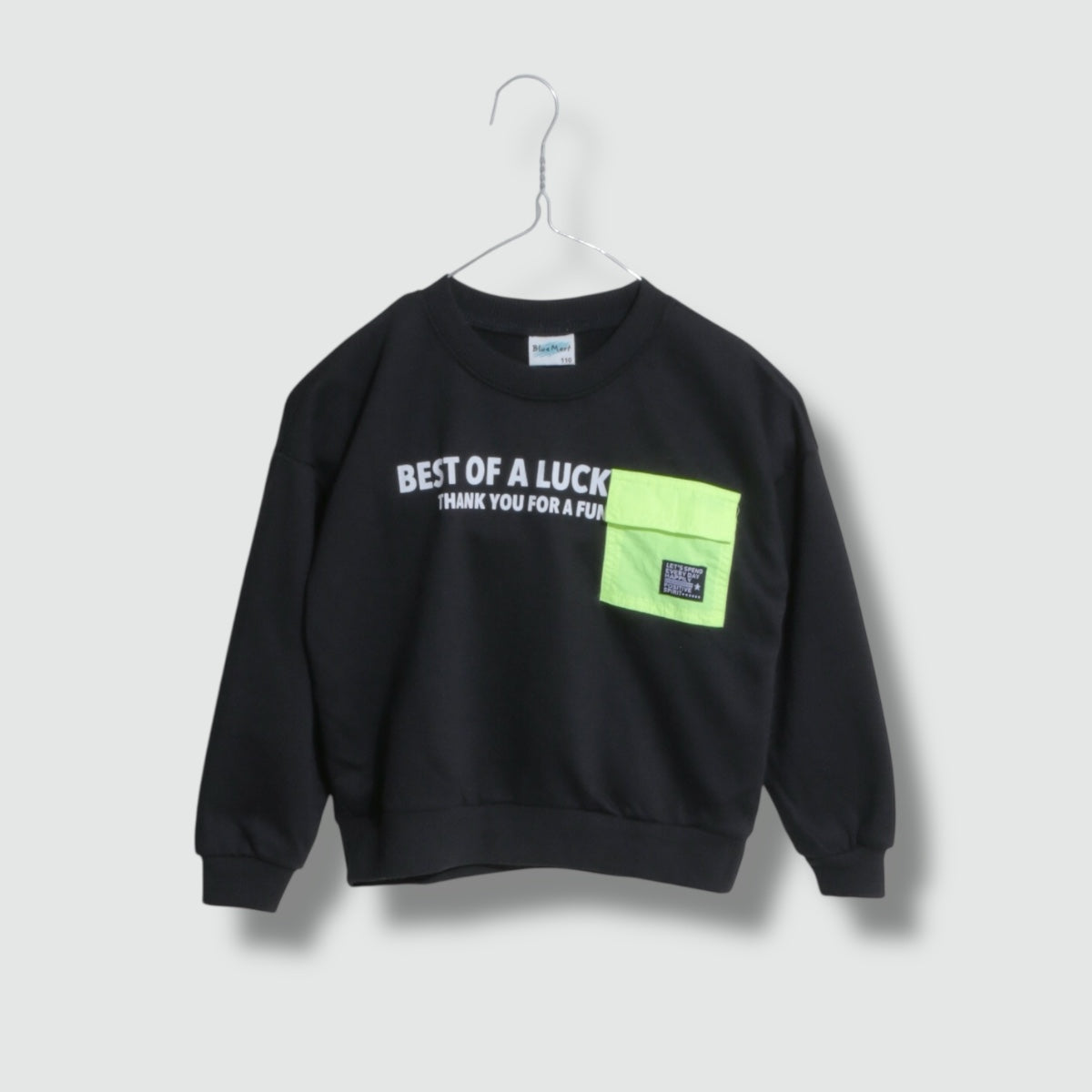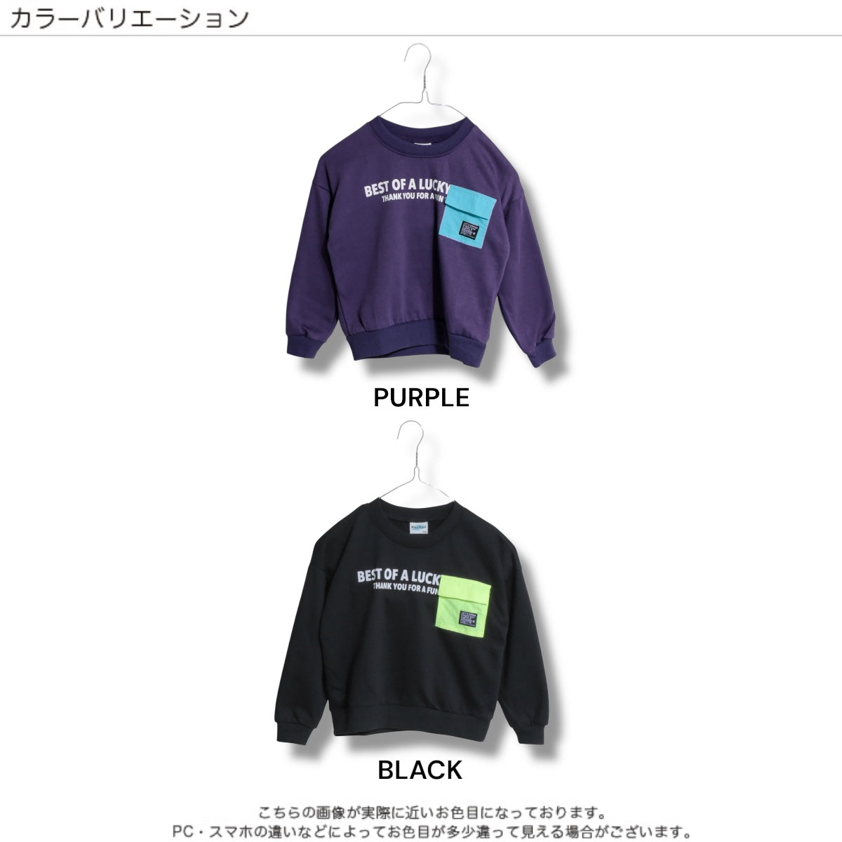 やわらかな薄手裏毛素材(起毛なし)に、カラフルなフラップポケットをプラス。 胸元のポケットが、遊び心を引き立ててくれるデザインです。 ゆったりシルエットで動きやすく、通園・通学はもちろん、デイリーにぴったりの一枚です。