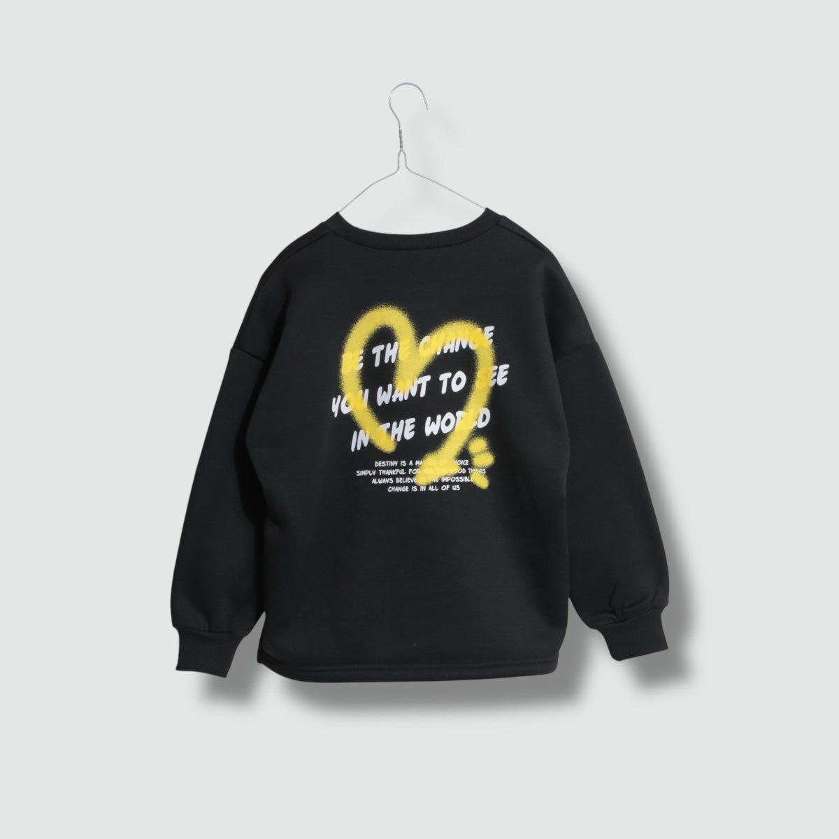 ほどよくゆったりとしたシルエットの裏起毛トレーナーです。 胸元にはさりげないロゴプリント、後にはハートが可愛い大きなロゴプリント。 リラックス感がありながら、着回しやすく毎日のコーデに活躍してくれます。