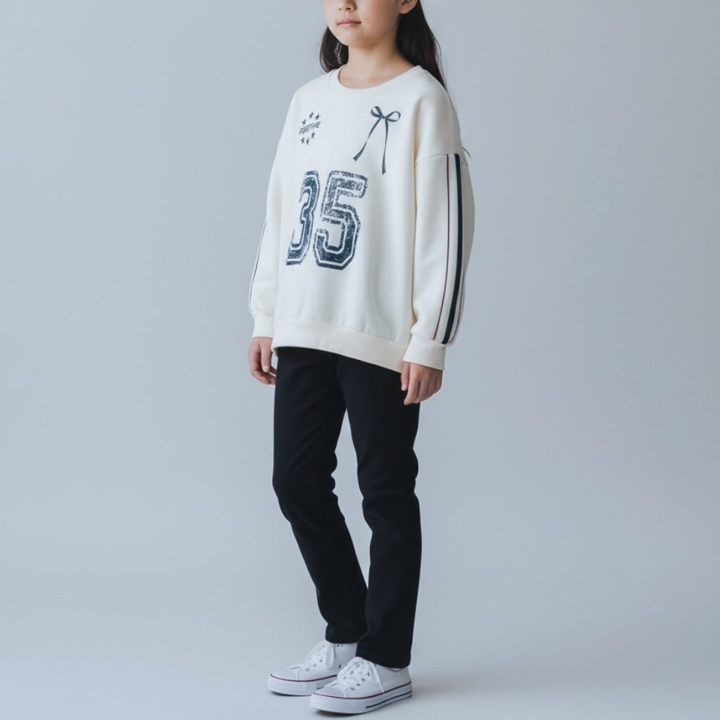 ほどよくゆったりとしたシルエットの裏起毛トレーナーです。 フロントのナンバーと袖のラインプリントががアクセントになり、カジュアルなスタイルにぴったりです。 パンツにもスカートにも合わせやすく、デイリーに活躍してくれる一枚です。