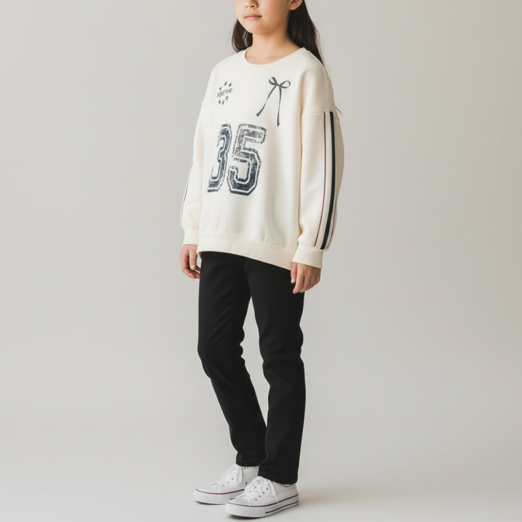 ナンバーロゴ 袖ライン裏起毛トレーナー