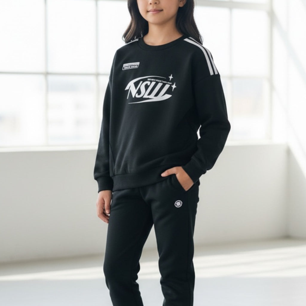 肩ライン プリント 裏起毛トレーナー