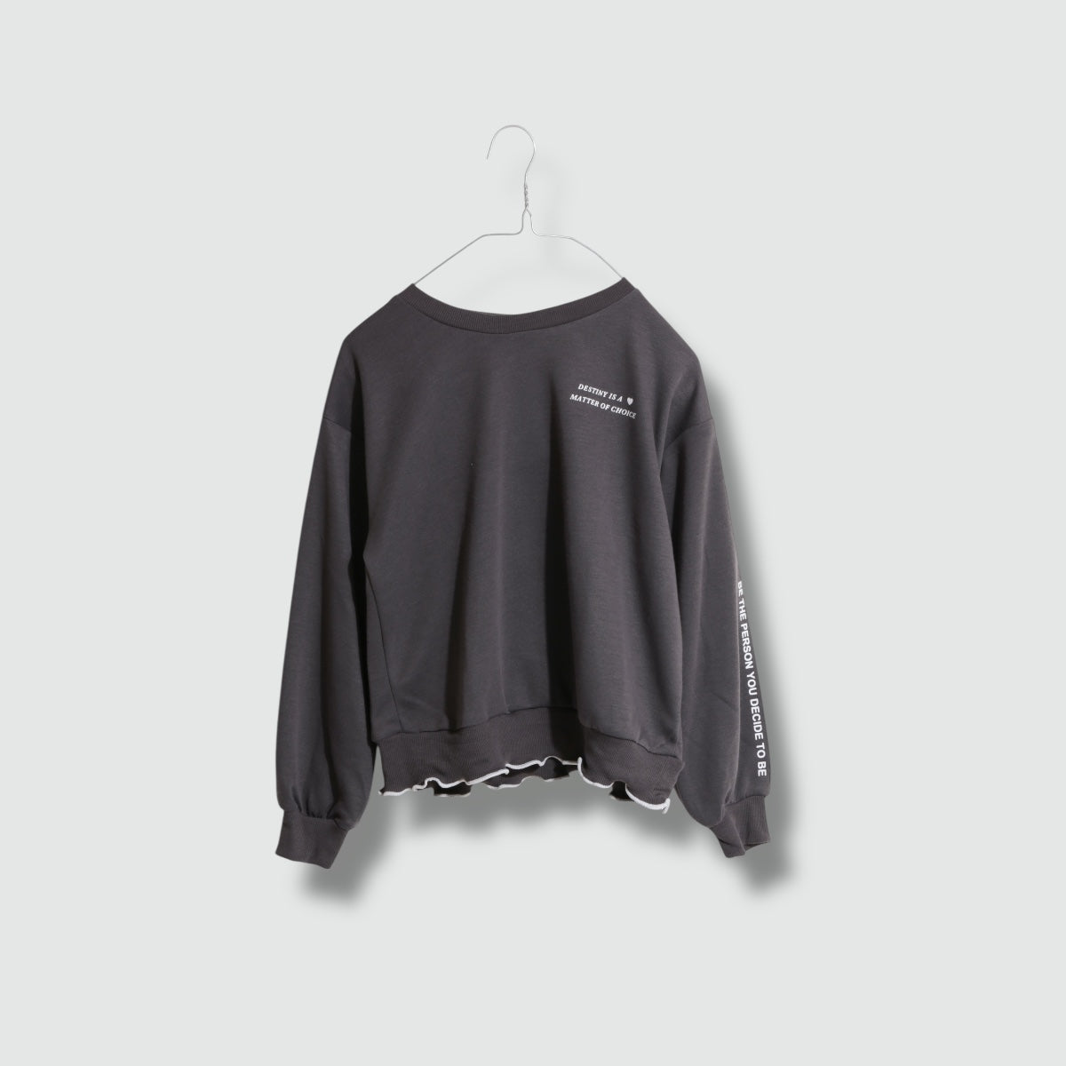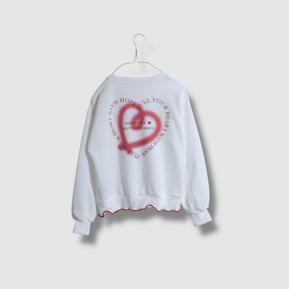 程よいゆったりシルエットで、季節の変わり目に着やすい薄手の動きやすいジャージー素材のトップスです。 背面のスプレー風ハート型とロゴを組み合わせたグラフィックが後ろ姿をキュートな印象に。 裾の配色メローが、ウエストのアクセントになっています。
