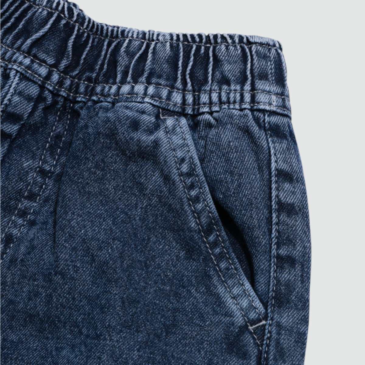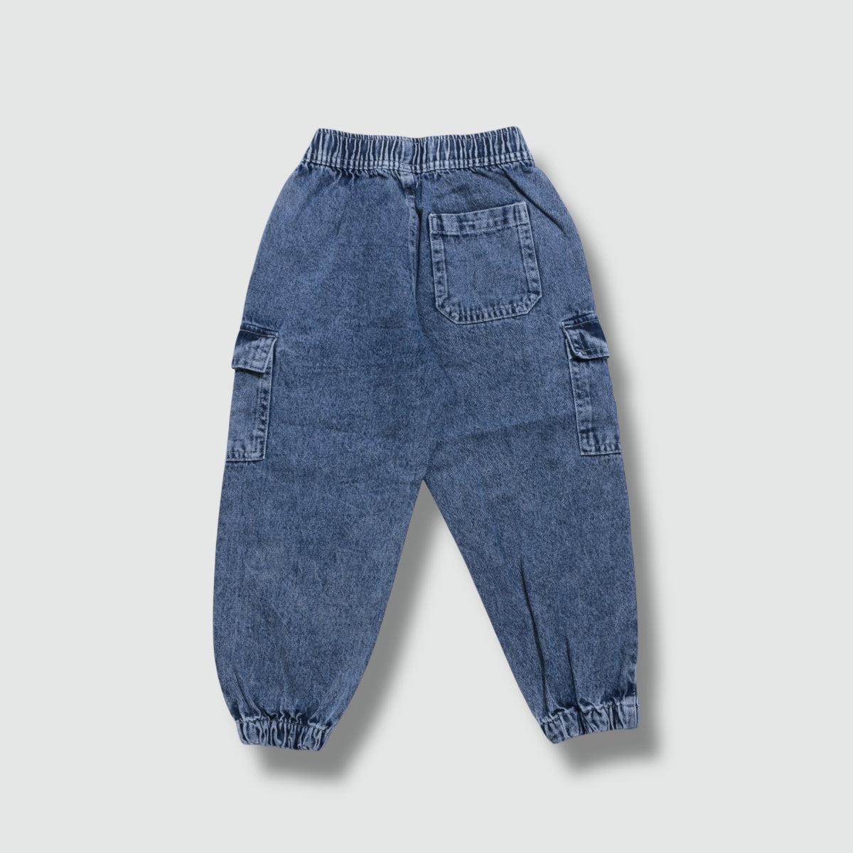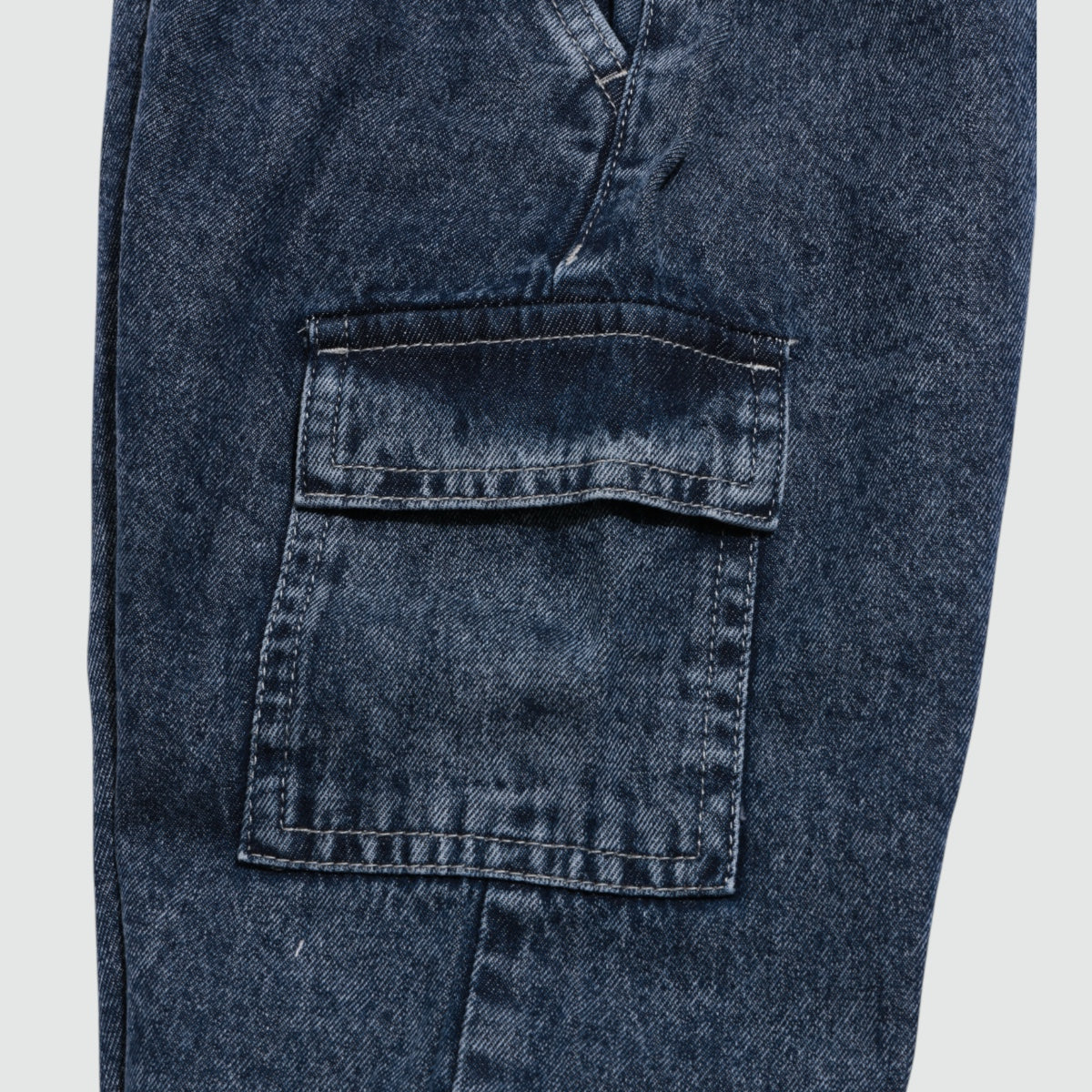 ケミカル加工を施した8オンスのデニム素材のカーゴデニムパンツ。 ウエストは総ゴム仕様で、着脱もらくらく。裾ゴムなのも嬉しいポイントです。 BIGシルエットのTシャツやスウェットと合わせれば、ゆるっとした今っぽいスタイルに。