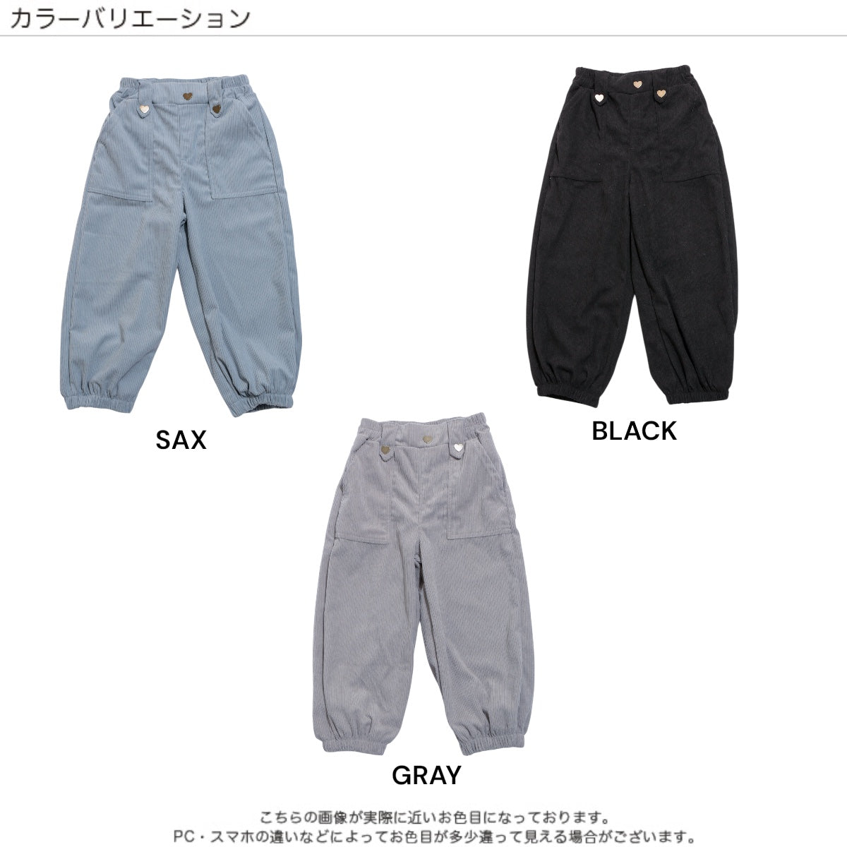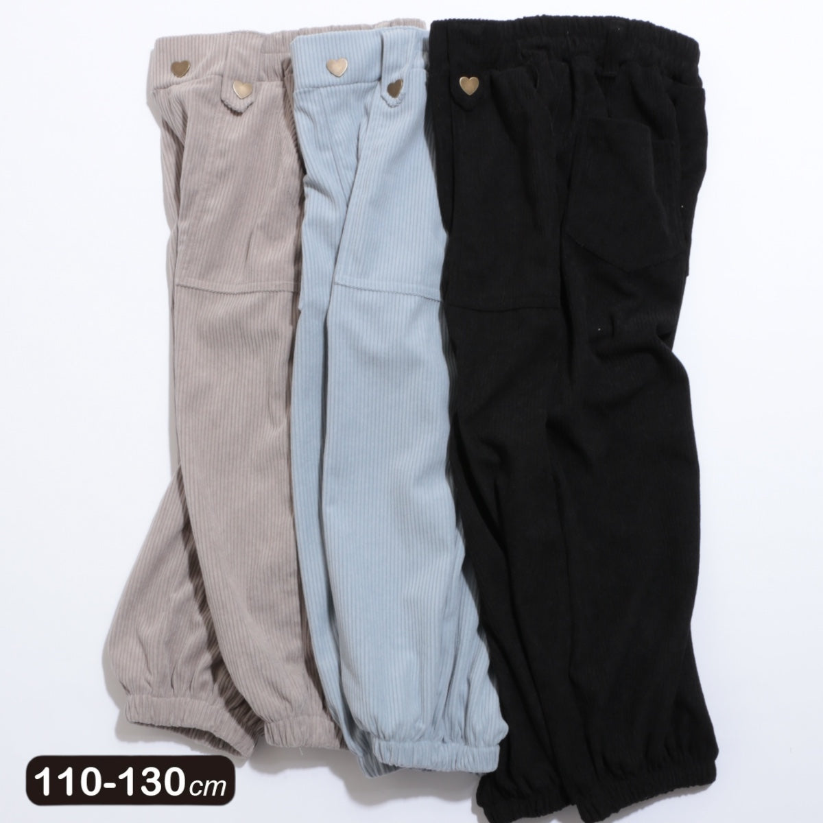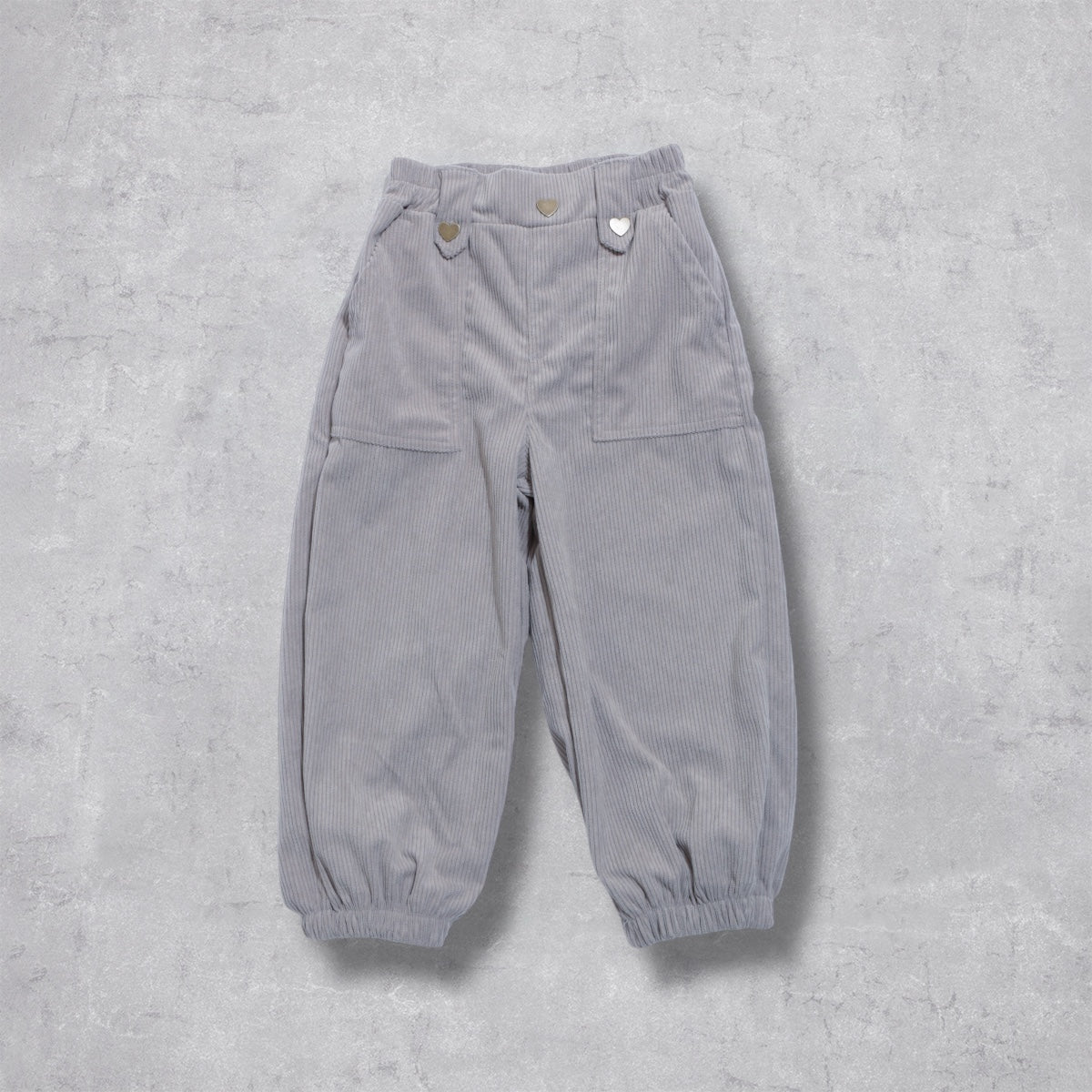 トレンドのワイドシルエットに、ちいさなハートの飾りボタンがきらり。秋冬らしいコーデュロイ素材のパンツ。