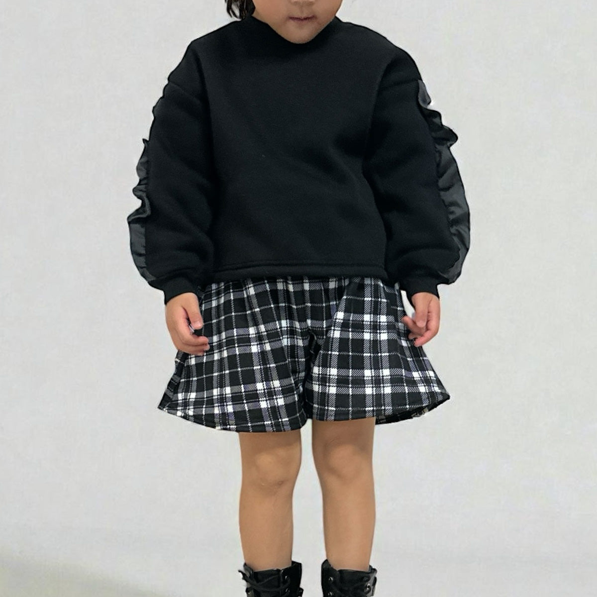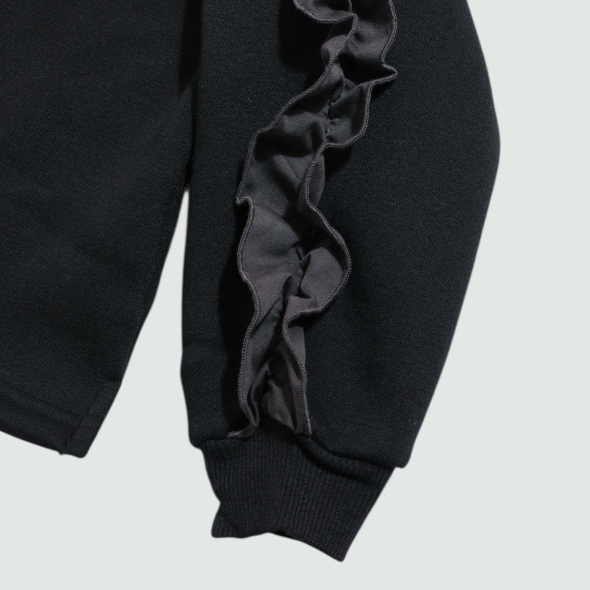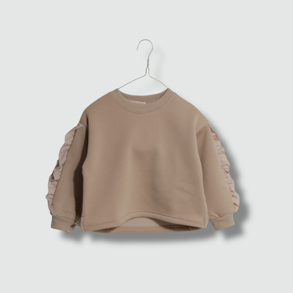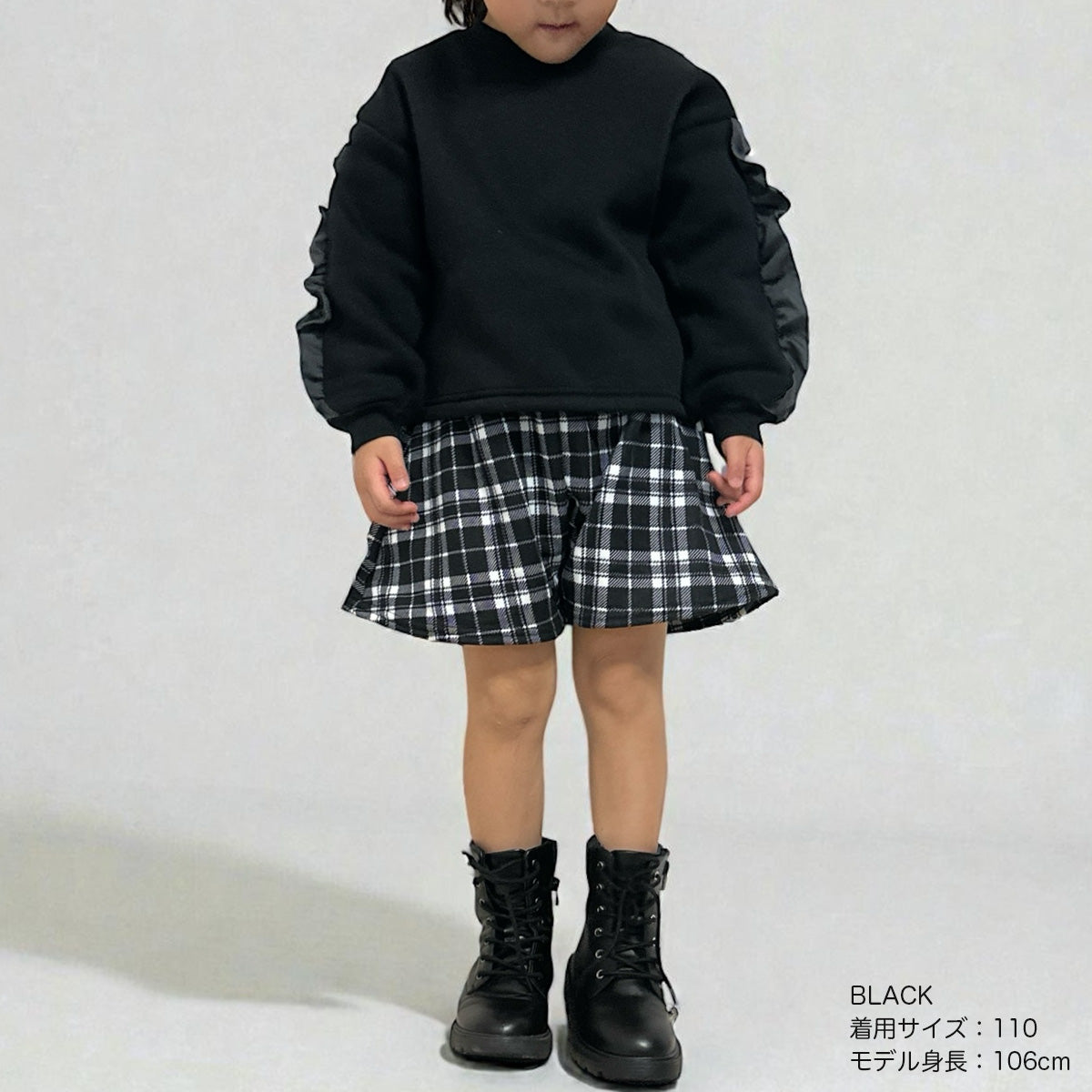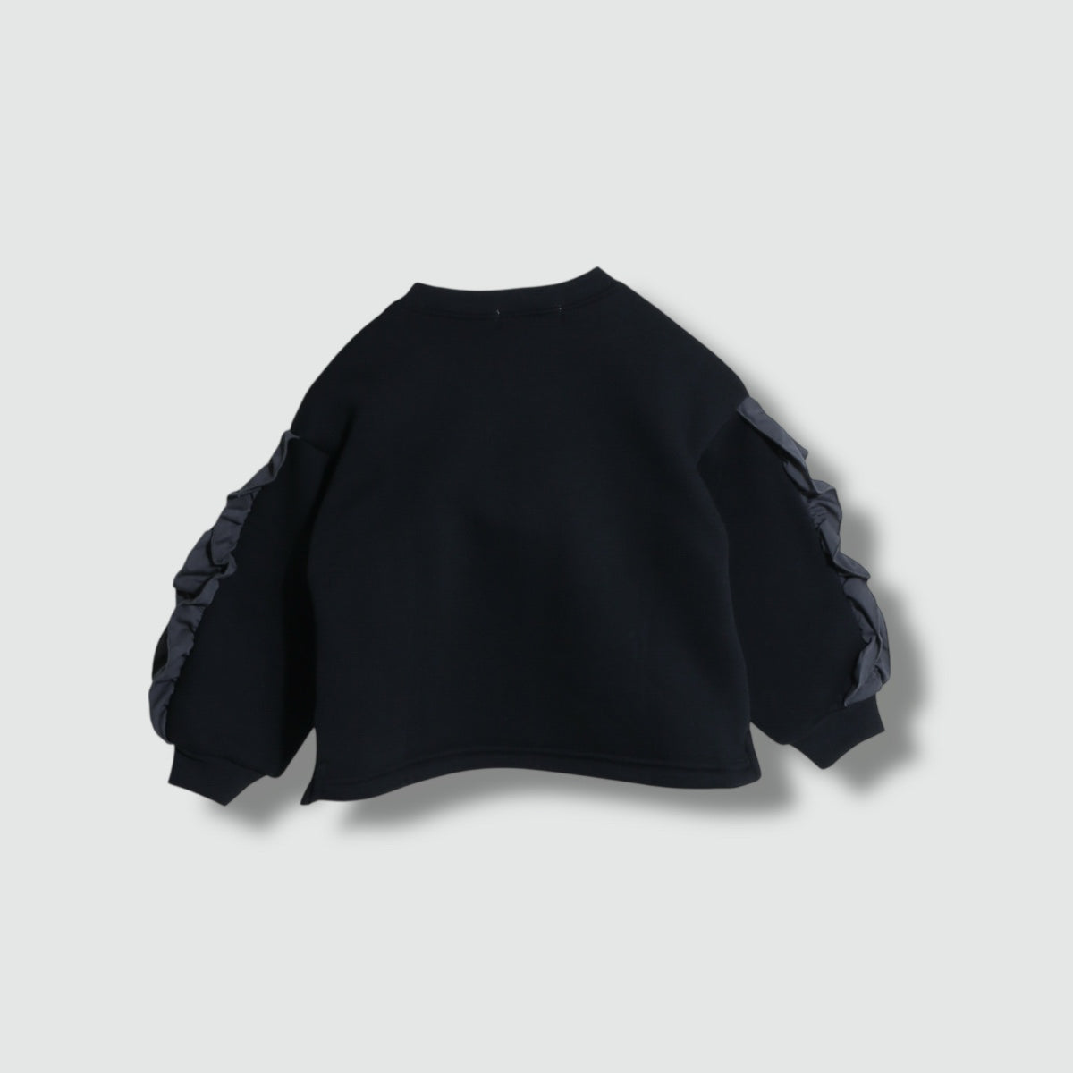 ふんわりとしたシルエットが魅力の裏起毛トレーナー。 袖にあしらわれた布帛フリルが、可憐さを引き立てます。