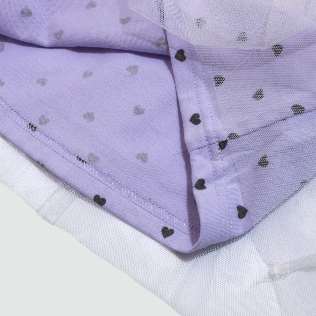 本体:ポリエステル65%、綿35% リブ部分:ポリエステル62%、綿33%、ポリウレタン5% チュール部分:ポリエステル100%