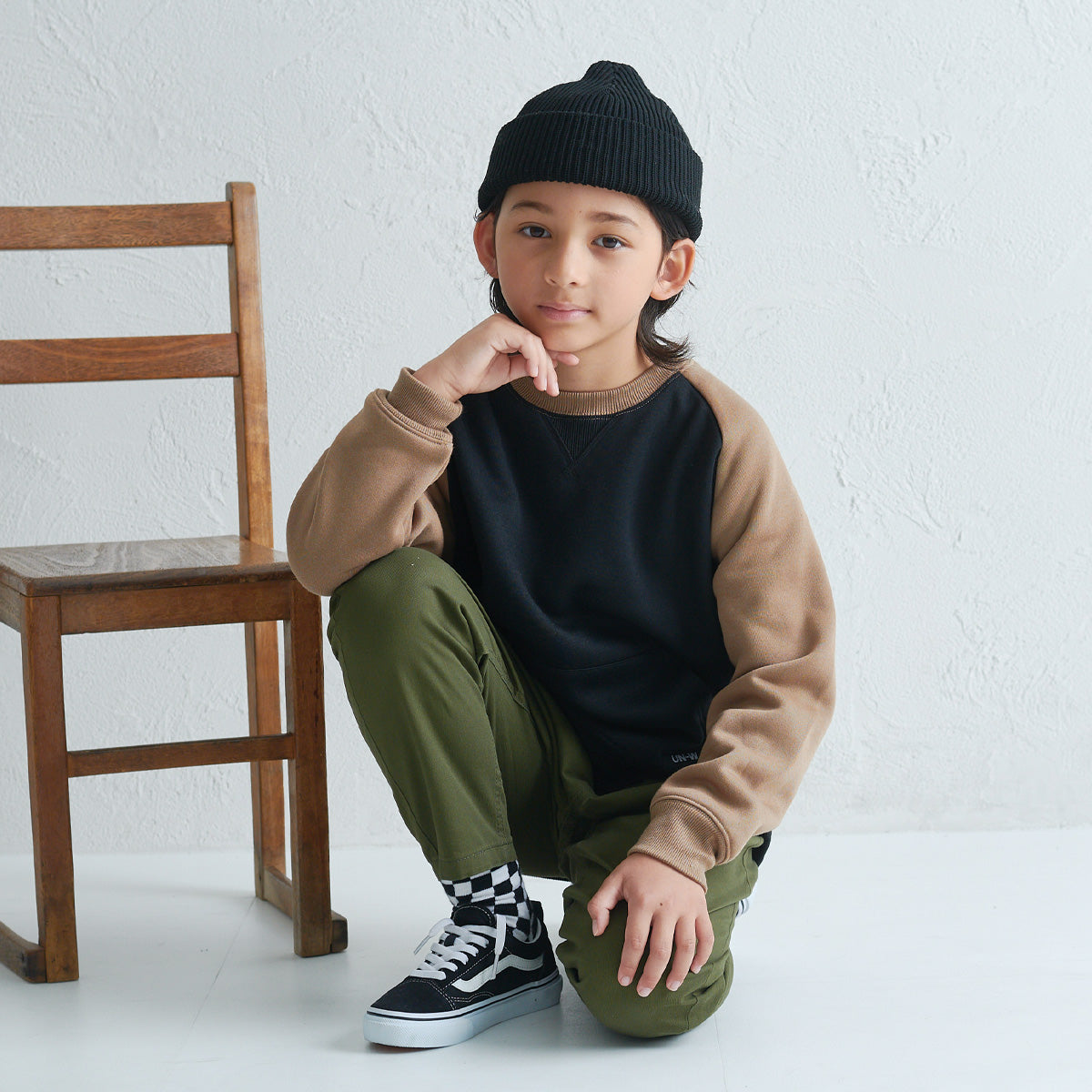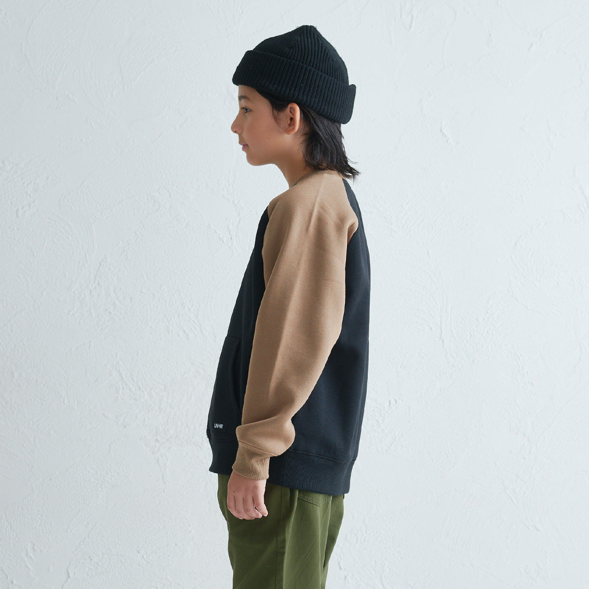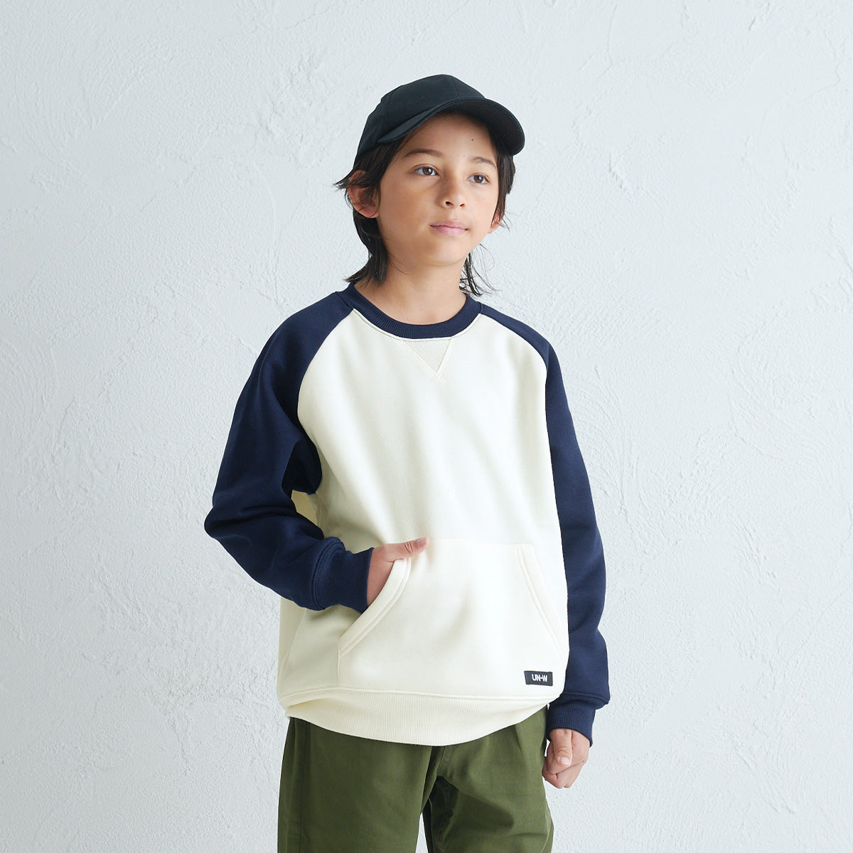 ほどよくゆったりとしたシルエットと、落ち着いた配色が魅力の裏起毛トレーナーです。 フロントにはカンガルーポケット風のデザインがあしらわれており、実用性もありながら、 襟元のVステッチや、裾・袖のリブ使いなど、細かなディテールにもこだわったデザイン。