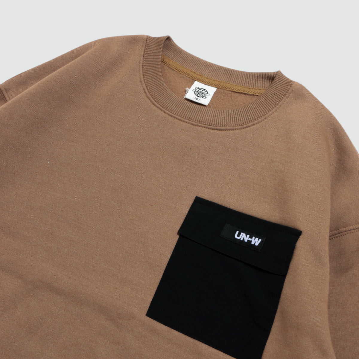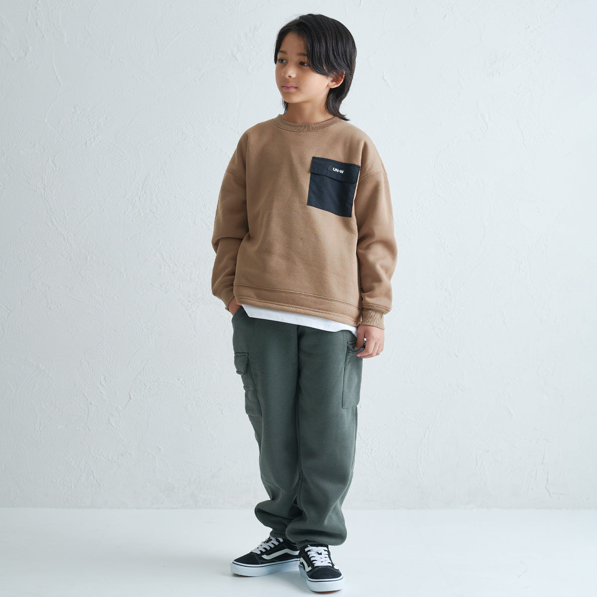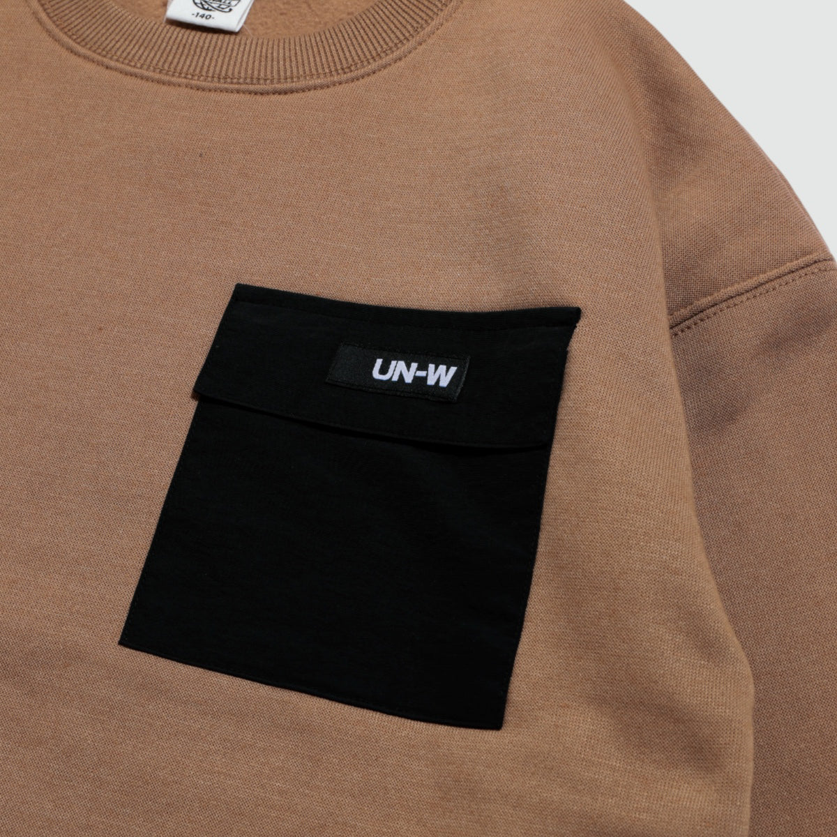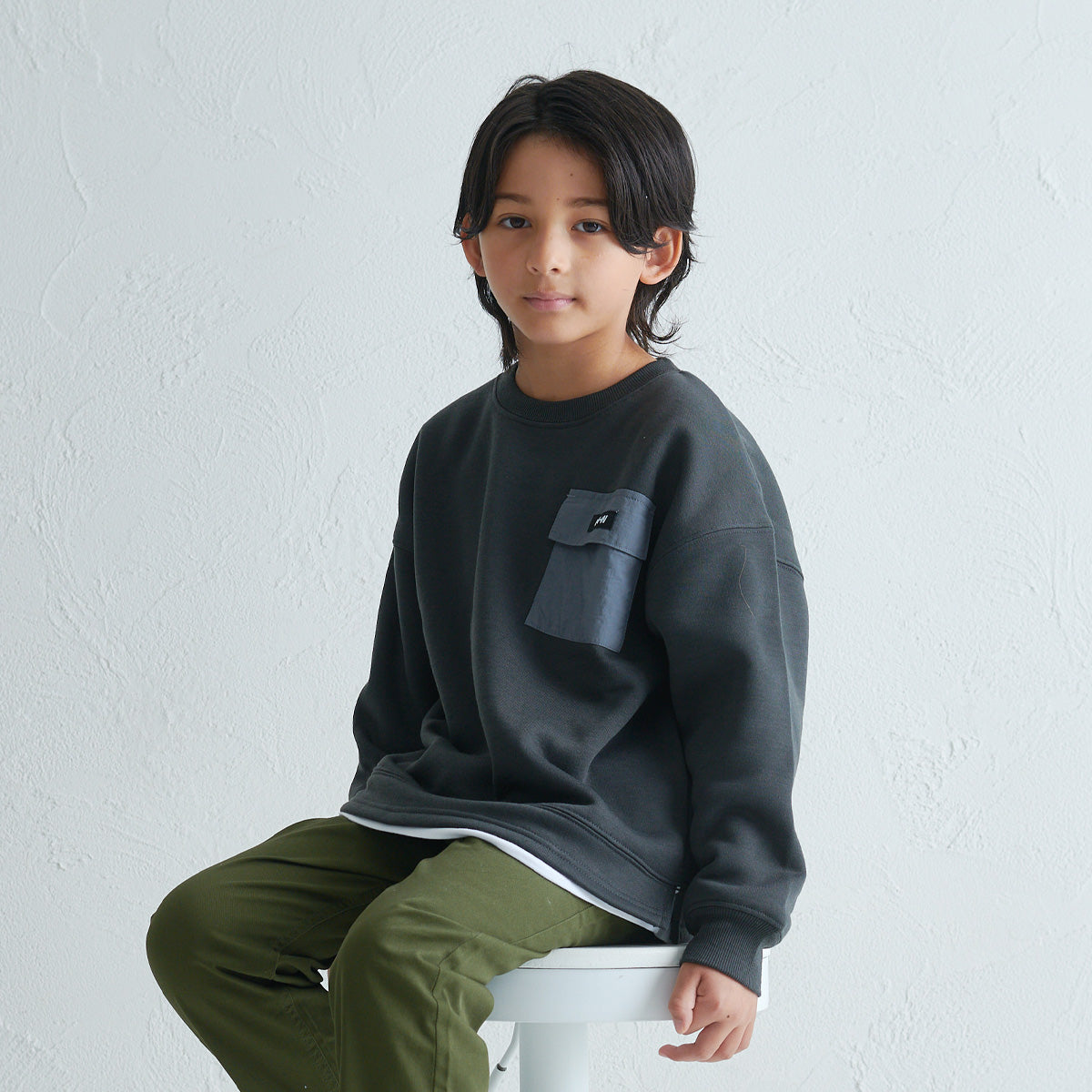 シンプルな中にちょっとした遊び心を感じさせる、ほどよくゆったりシルエットの裏起毛トレーナーです。 胸元にはフラップ付きのナイロンポケットがあしらわれていて、異素材の組み合わせがさりげないアクセントに。 裾にはフェイクレイヤードのデザインがほどこされ、重ね着しているようなこなれ感のある仕上がりに。サイドにはスリット入り。